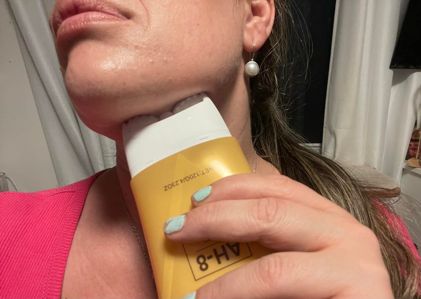 Compra Ahora¡Estoy encantada con este producto! Lo llaman crema para el cuello, pero tiene la consistencia de un sérum, translúcido y ligero. La crema viene en un tubo grande que está ingeniosamente conectado a un dispositivo de masaje, y la loción sale entre los rodillos. ¡Todo funciona perfecto! Me gusta todo de este producto: la crema huele delicioso, se siente muy bien en la piel (no es grasosa) y los rodillos de masaje funcionan muy bien, se sienten increíbles en mi cuello y en la línea de la mandíbula.