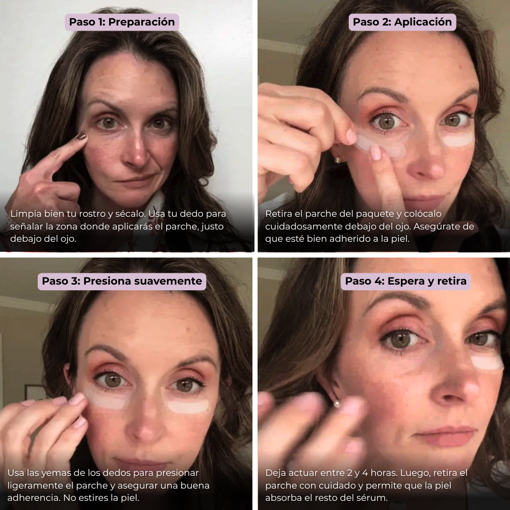 Para obtener los mejores resultados, aplica los parches 2-3 veces por semana para ayudar a restaurar la producción de colágeno y reducir visiblemente los signos de envejecimiento.