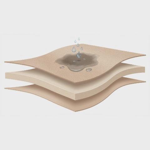 La capa superior absorbe al instante, la capa intermedia retiene el líquido en el núcleo y la capa inferior impide que pase a la ropa — manteniéndote seca y cómoda.