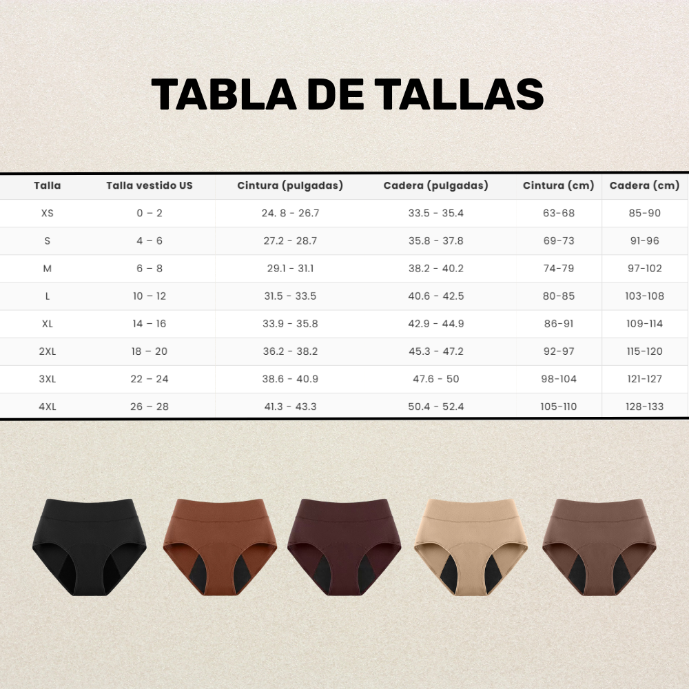 Tabla de tallas - PuraDerma LeakGuard™ Bragas